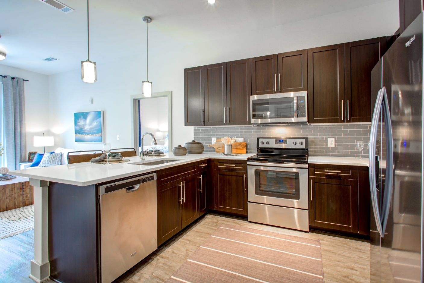 Our apartments are fully stocked with everything you need to feel at home. This community includes luxury amenities, resident lounge, pools, storage and covered parking – reserved parking is available for an additional fee.